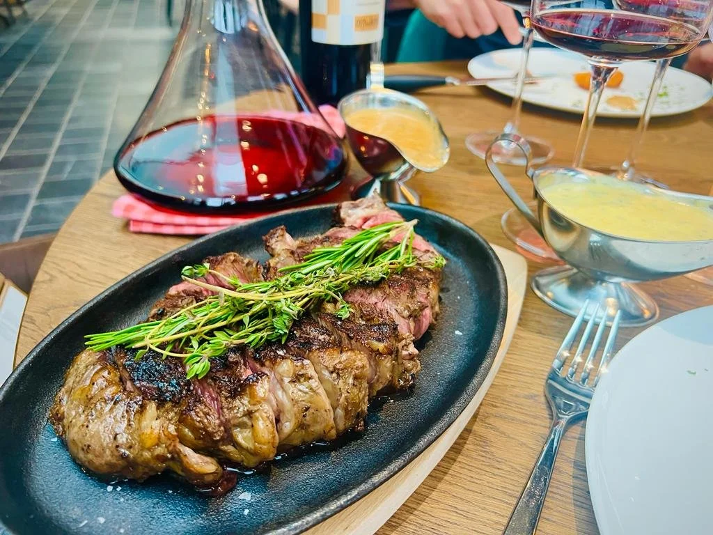 In d’Entrecôte (Binnenkort heten we Bogèst) serveren we een uitgebreid assortiment aan kwaliteitsvlees, met als trots ons botermalse Belgische Wit Blauw runds. Daarnaast werken we ook met specifieke suggesties zoals de Red Heifer, de Hereford of andere toprassen zoals onze Black Angus. Ons Belgisch runds staat bekend om zijn fijne structuur, sappigheid en volle smaak. Elk stuk rundsvlees wordt zorgvuldig geselecteerd. Veel stukken vlees worden ook gerijpt om de unieke smaak optimaal tot zijn recht te laten komen. Naast ons rundvlees zijn ook onze andere gerechten, zoals onze spare ribbetjes, lamskroon of sappige brochettes van kip of rund, ware traktaties. Niet alleen vleesliefhebbers, maar visliefhebbers en vegetariërs zijn bij ons aan het juiste adres. Voor veganisten werken we altijd met een verfijnde dagsuggestie. Zo kunnen we u een zeetong serveren waar ze aan onze kust jaloers op zijn. Of een imposante scampibrochette serveren, waar u U tegen zegt… Om nog van de verse zalm (liefst met vers geklopte béarnaise) te zwijgen. Overheerlijk!