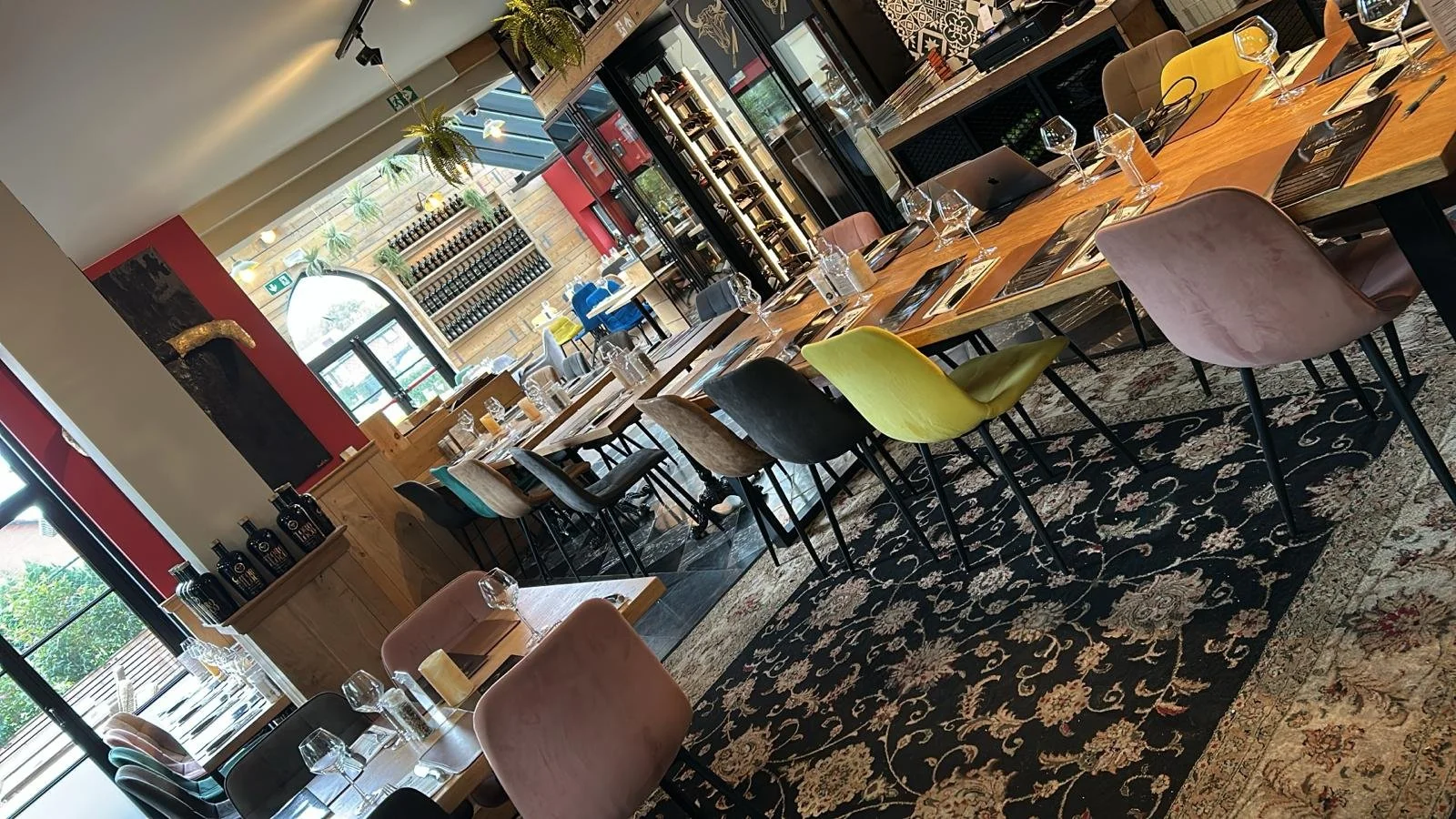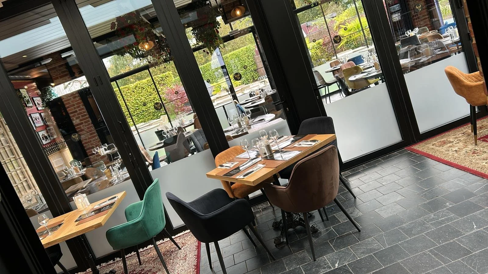 Vernieuwd met allemaal authentieke elementen is de living het hedendaagse paradepaardje van Bogèst Hasselt. Veel ruimte, licht en tijd om te ontspannen in een gezellig kader. We hebben hier ook langere tafels, rechthoekig, voor grotere gezelschappen, zodat ze gezellig samen kunnen zitten.